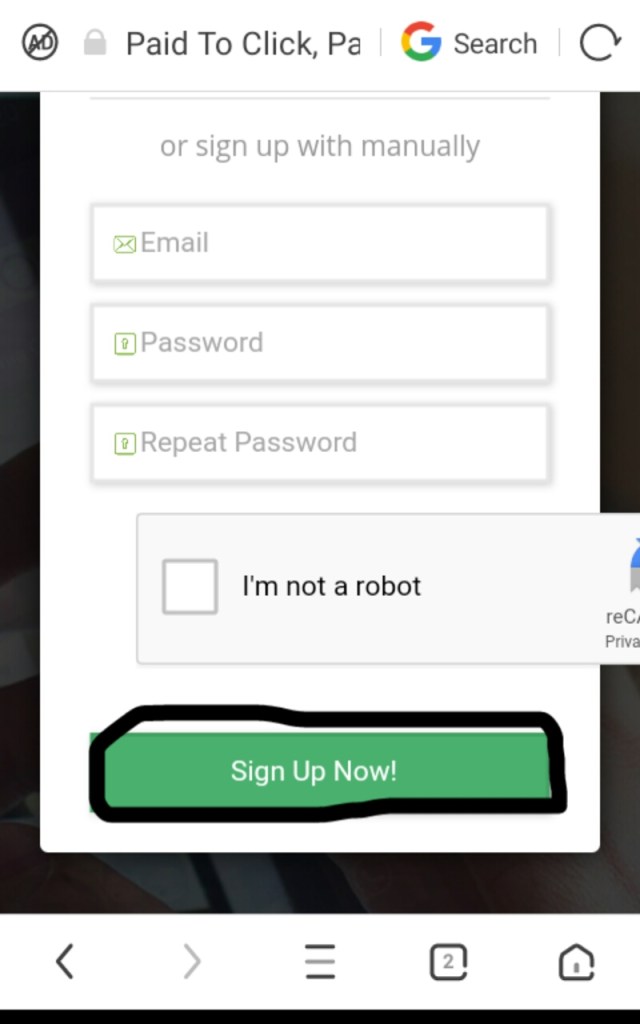 Now click I am not rebot after solving captcha click signup now